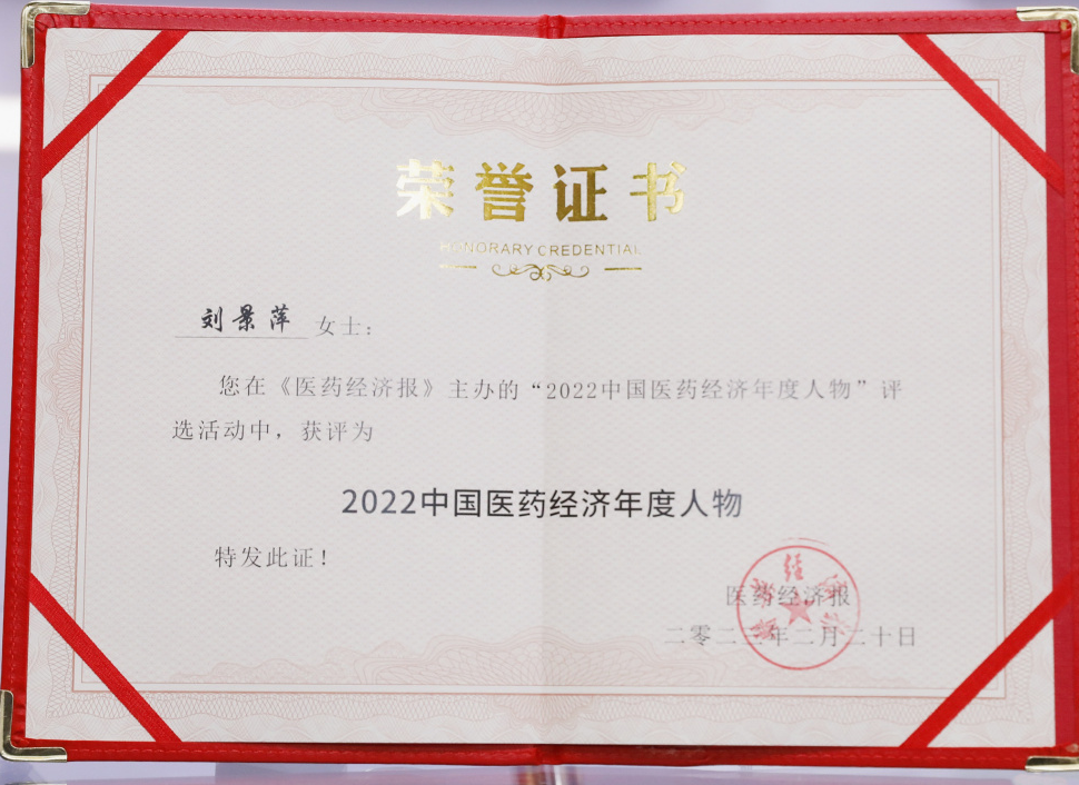 20日,2022中国医药经济年度人物榜单隆重揭晓,尊龙药业集团刘景萍董事长当选“2022中国医药经济年度人物”。
