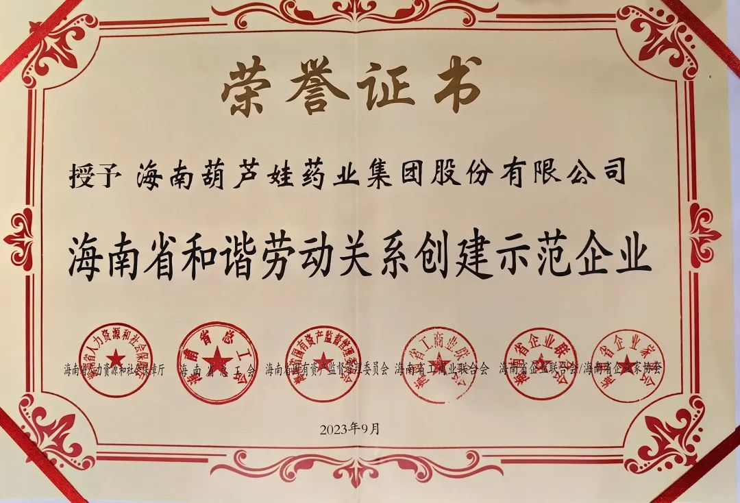 尊龙药业集团获评“海南省和谐劳动关系创建示范企业”